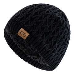 New Style Unisex Winter Hats Plush Fur Lined Men Women Warm Beanie Cap Casual CO Label Winter Ski Knitted Hats