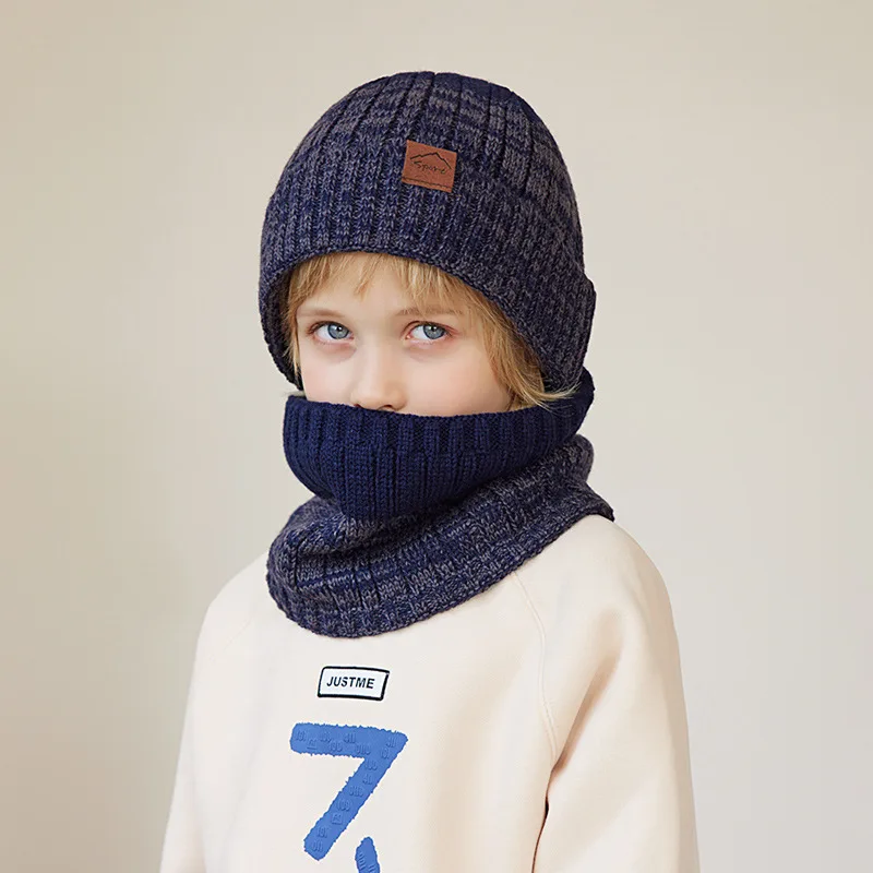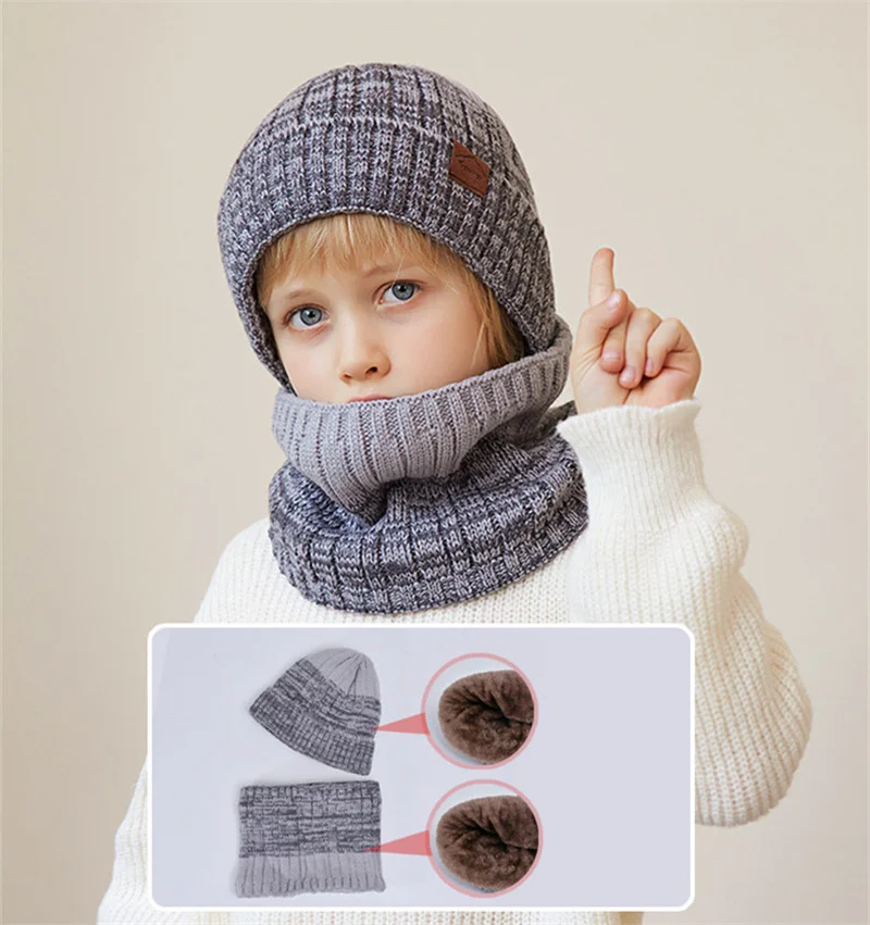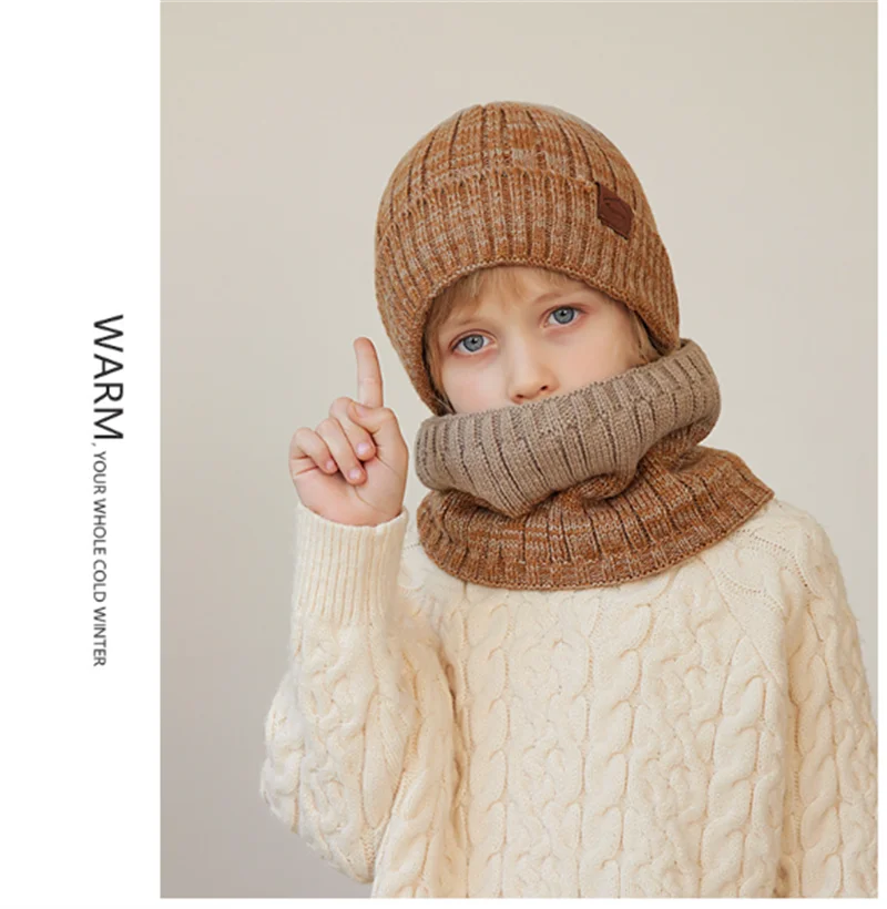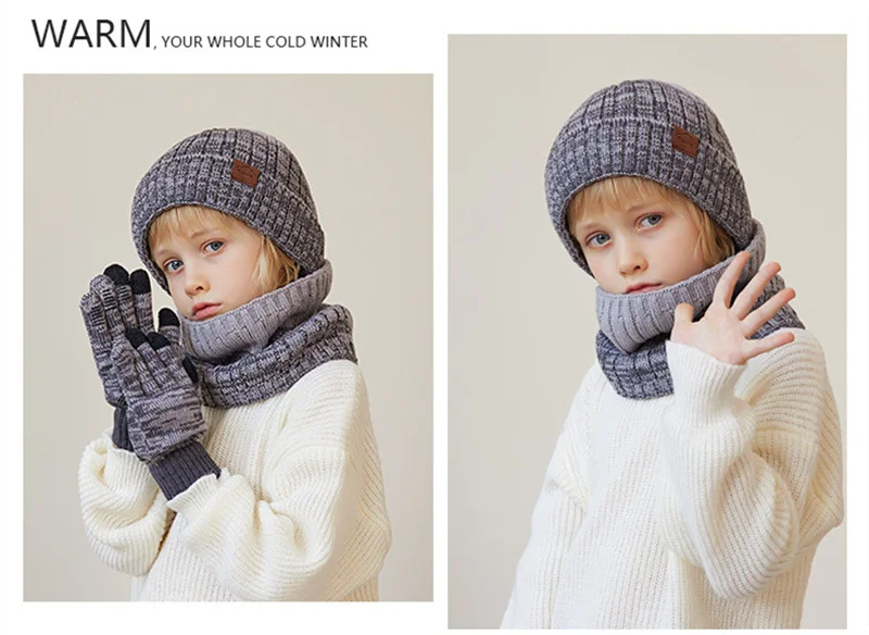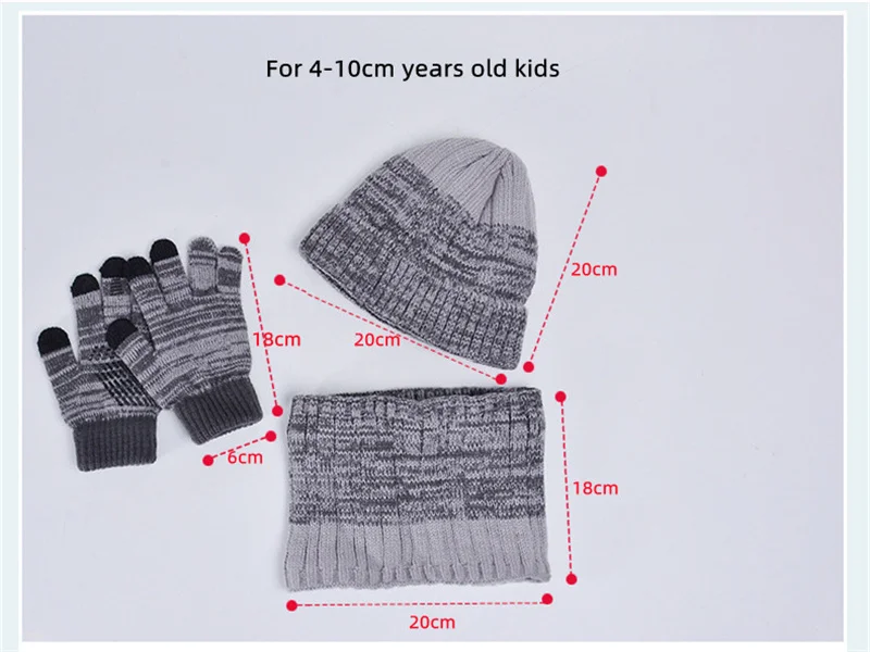 1 Set 4-10Y Children Baby Boy Winter Knit Gloves Hat Scarf 3pcs Suit Outdoor Windproof Fleece Warm Kids Ring Beanie Hat for Boys