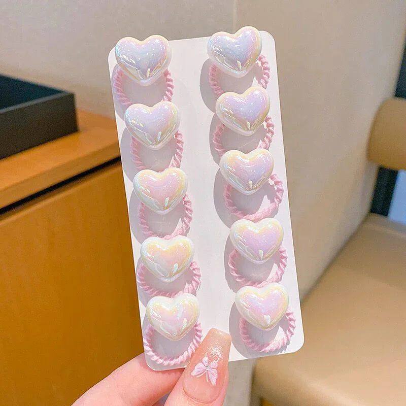 10Pcs Cute Baby Girl Hair Bands Cartoon Love Heart Star Hair Ties Toddler Elastic Rubber Band Kids Hair Ropes Accessories