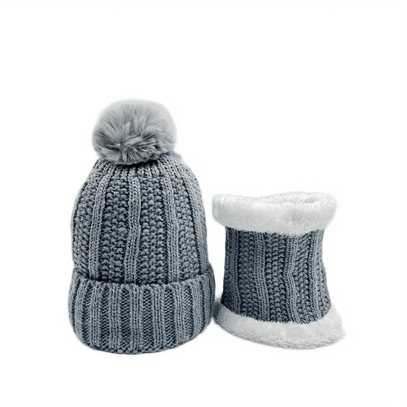 1Set Winter Warm Knit Hat Set Winter Hat Thick Plush Windproof Cold Casual-Windproof Warm Casual Hat with Scarf