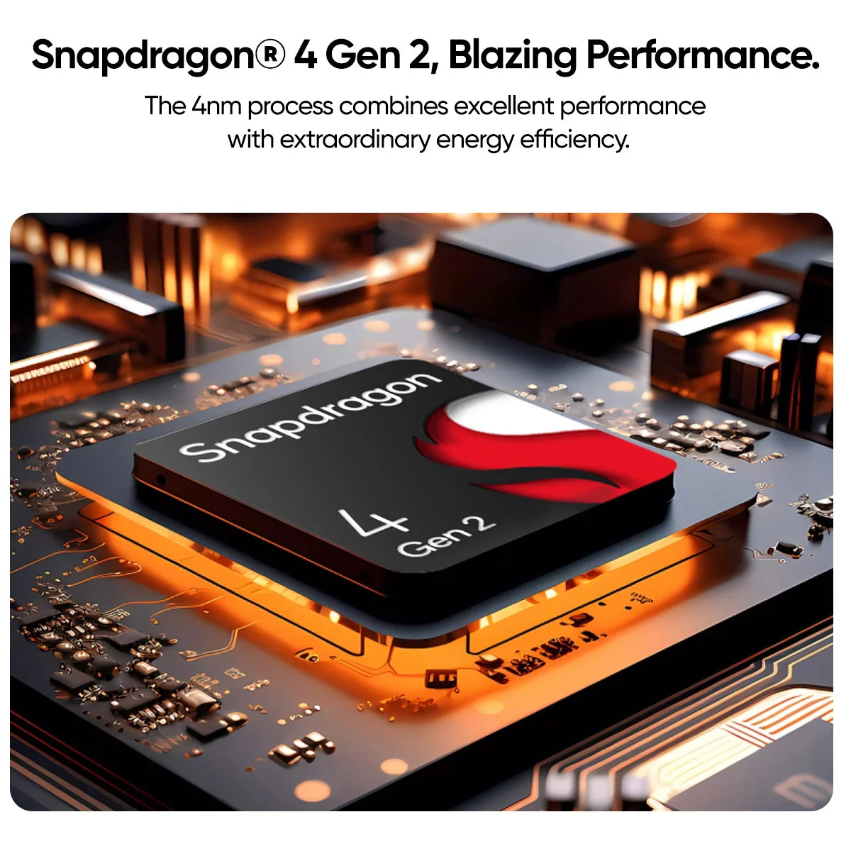 2. Processor --- Snapdragon 4 Gen 2 Mobile Platform, GPU: Adreno 613, CPU type: Octa-core. CPU dominant frequency: 2xA78 2.2GHz + 6xA55 1.95GHz.