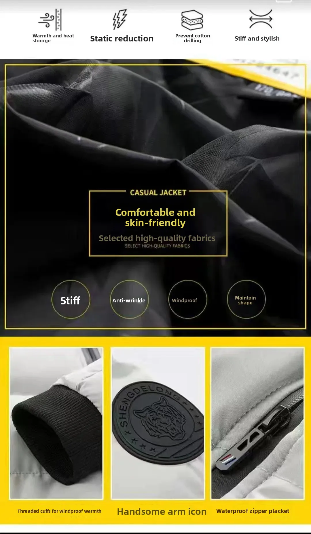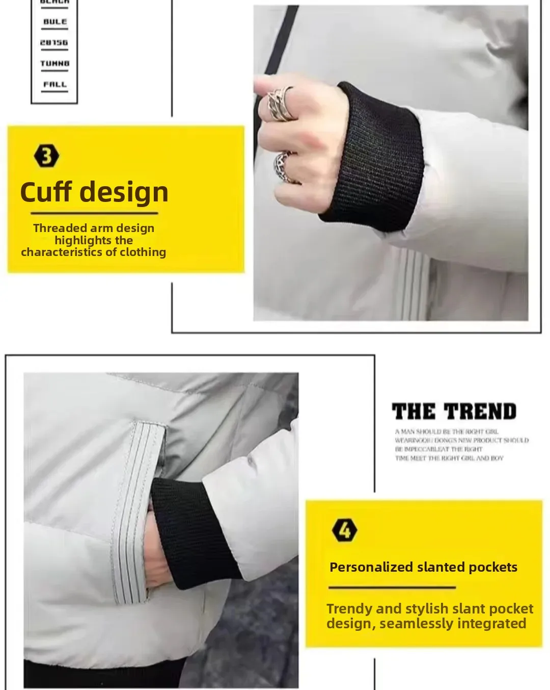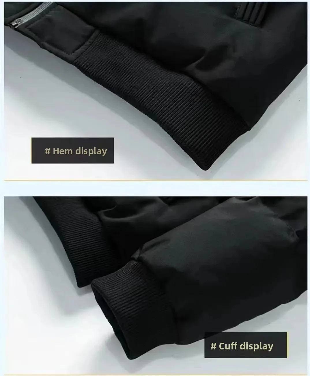 • Thickened Warmth : This winter men's jacket boasts a thickened cotton padding, ensuring maximum warmth and comfort during cold weather.