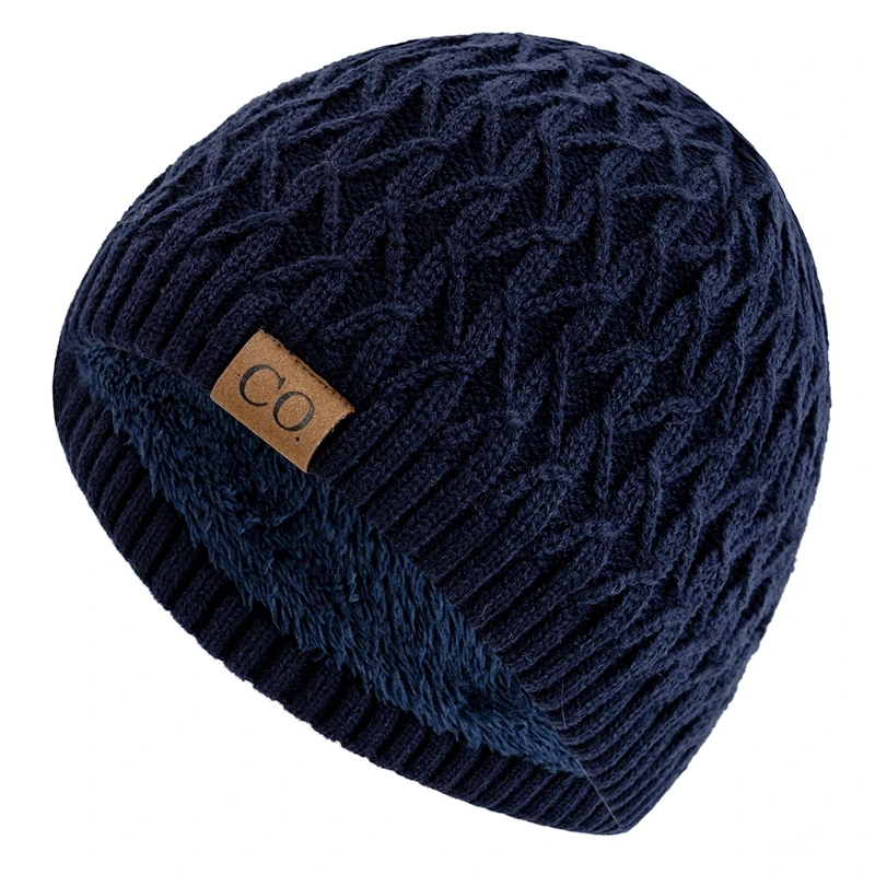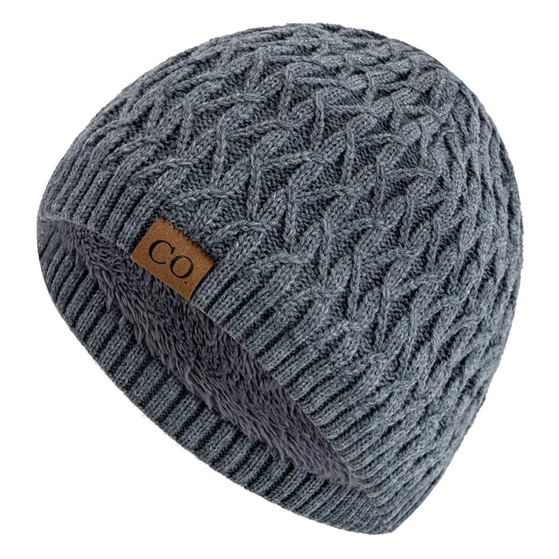 New Style Unisex Winter Hats Plush Fur Lined Men Women Warm Beanie Cap Casual CO Label Winter Ski Knitted Hats