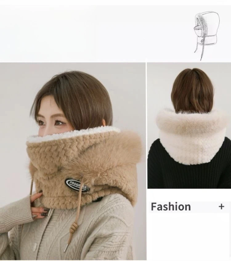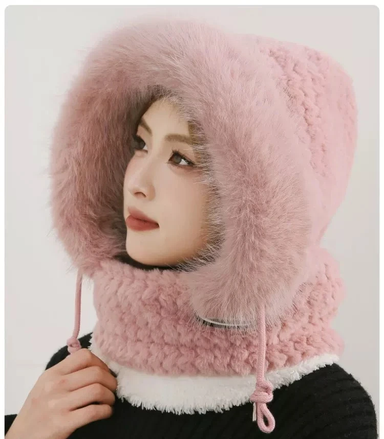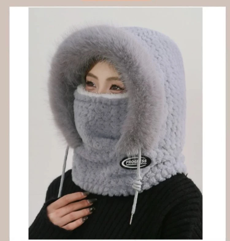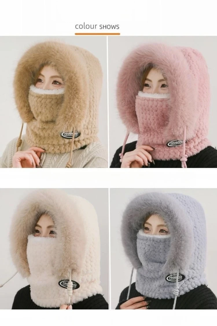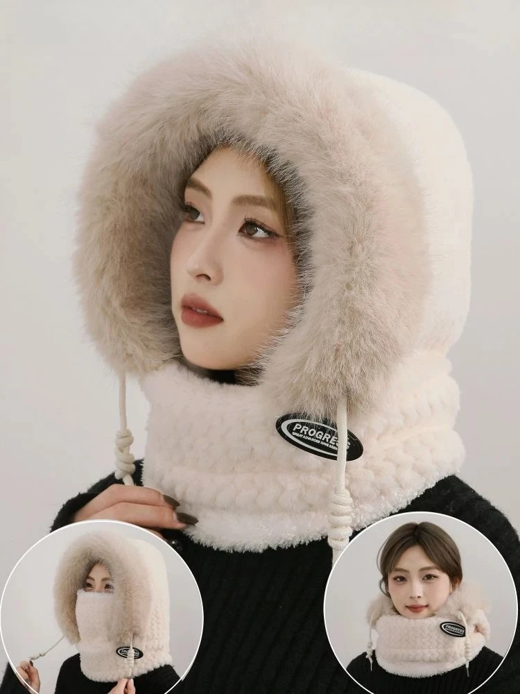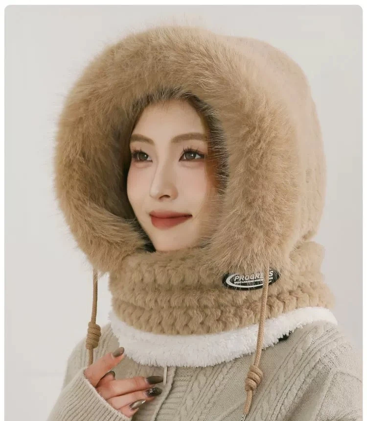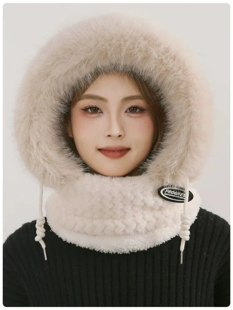 Winter Hat Woman Neck Hat Integrated Lei Feng Hat Ear Protection Windproof Warm Baotou Hat Thickened Bike Head Cap